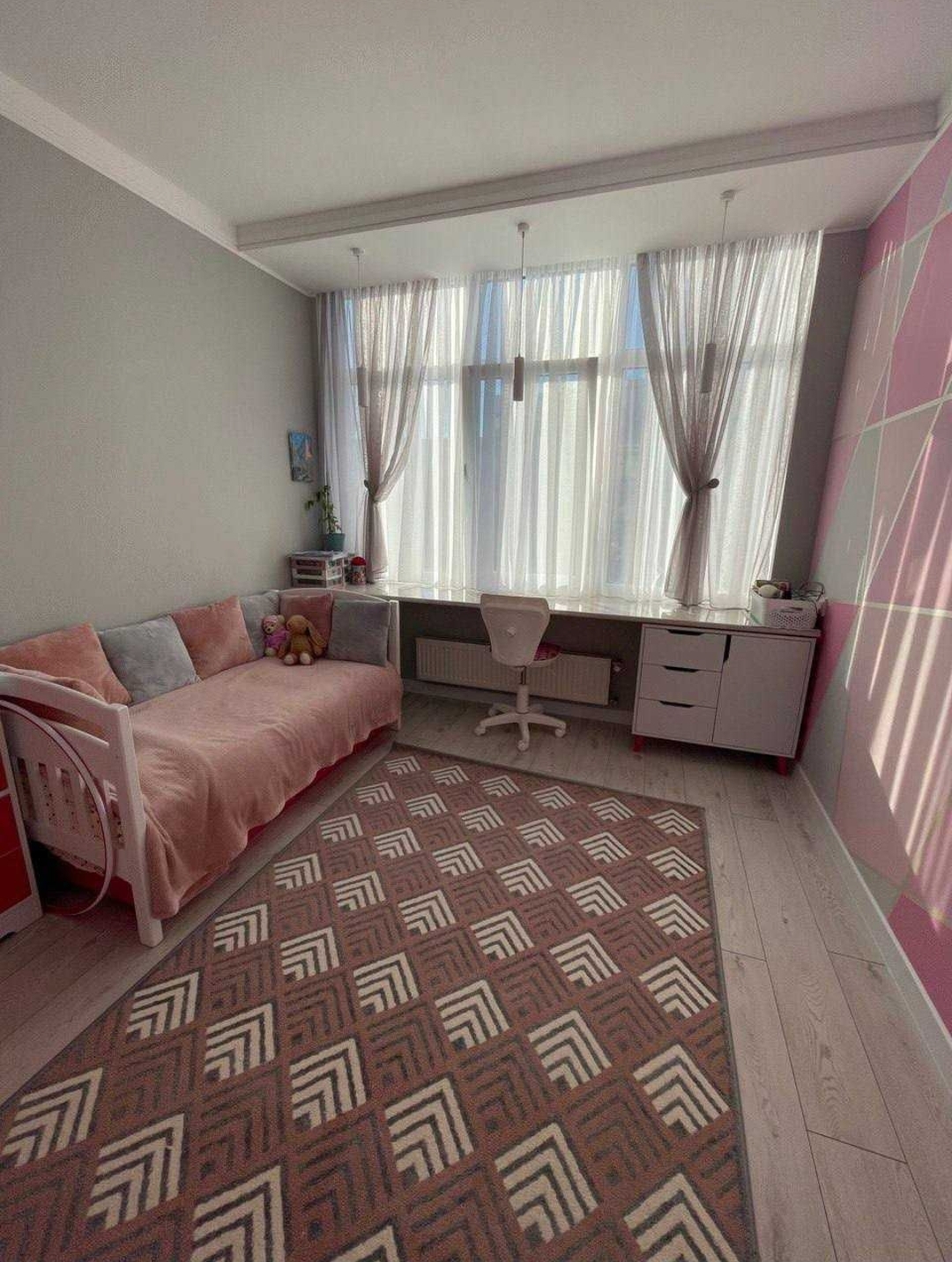 21520 Просторная трехкомнатная квартира в ЖК "40 Жемчужина". Общая площадь 82 кв.м. В квартире выполнен качественный ремонт. Полностью укомплектована мебелью и техникой. Полная шумоизоляция. Три комнаты. Одна спальня. Две детские. Кухня-студия. Есть гардеробная и небольшая кладовая. Есть подземный паркинг. В доме установлен генератор. Всегда есть интернет. На 3 этаже детский и спортивный комплекс, к которому имеют доступ только жильцы дома. Закрытая охраняемая территория.