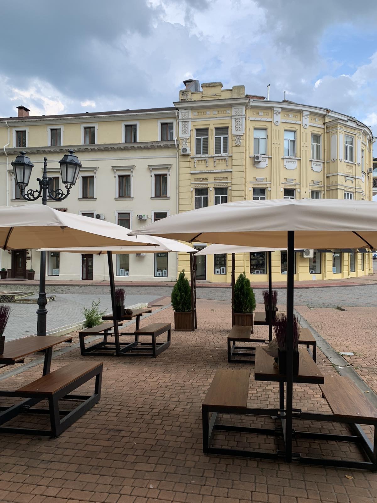 22223. Помещение на Вице Адмирала Жукова, фасад на Греческую площадь, под кафе, пиццерию, бургерную, общая 101 м.кв. Вентиляция, кондиционеры. Три санузла. Электро 15 кВт. Удобная, большая летняя площадка. Свежий ремонт. Аренда: 800$+предлагается выкуп оборудования и мебели нынешнего арендатора.
