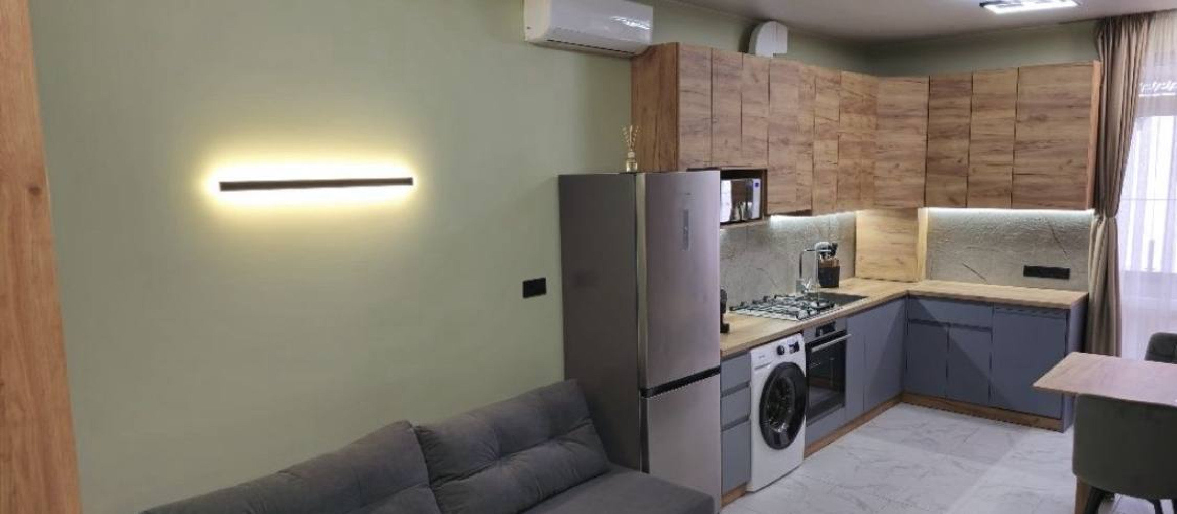 32911. Продам стильную 1-комнатную квартиру площадью 44 м² в современном жилом комплексе «Авиньон» с панорамным видом на море и город. Квартира с продуманной планировкой и дизайнерским ремонтом, выполненным из качественных материалов. Просторная терраса со стеклянными перилами и зашитым потолком — идеальное место для отдыха. Установлен двухконтурный газовый котёл, индивидуальные радиаторы, комбинированная система горячего водоснабжения (газ + электро). Ванная комната оснащена встроенной сантехникой, ванной с терморегулятором и зеркалом с подогревом. Инверторные кондиционеры в обеих комнатах создают комфорт, система помпового осмоса обеспечивает качественную питьевую воду. Квартира полностью укомплектована новой техникой: холодильник, духовой шкаф, варочная поверхность, посудомоечная и стиральная машины, кофемашина, микроволновка, телевизоры 42” и 55”. Есть гибридный инвертор для резервного питания котла, холодильника, освещения и интернета. Всё абсолютно новое, в том числе посуда и раскладной диван — ни разу не использовались. Жилой комплекс отличается современной архитектурой, ухоженной территорией и удобной локацией с развитой инфраструктурой. Квартира полностью готова к проживанию или сдаче в аренду с первого дня. Идеальный вариант для тех, кто ценит комфорт, качество и вид на море.