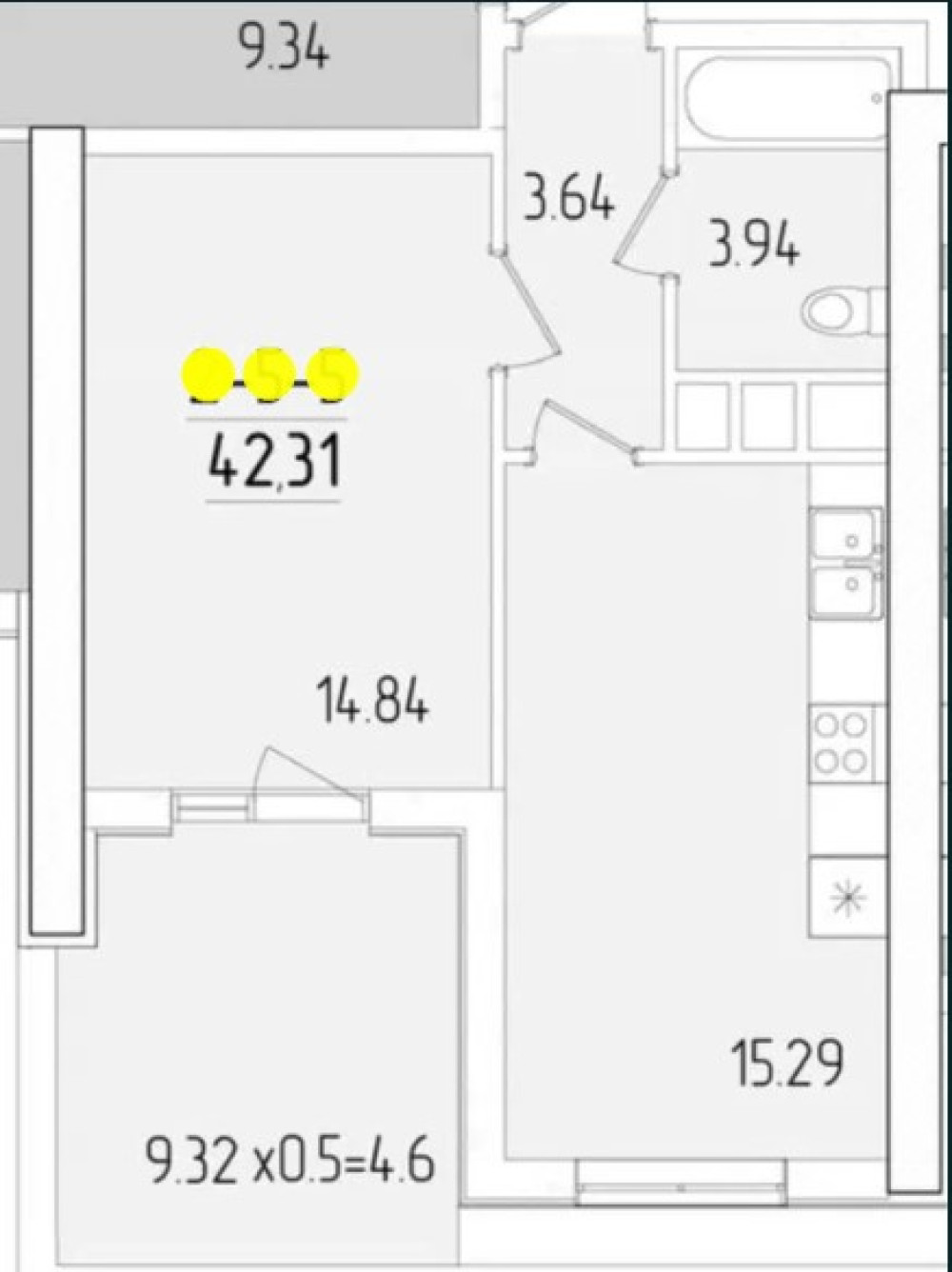 • Площа: 43/15/15 м²