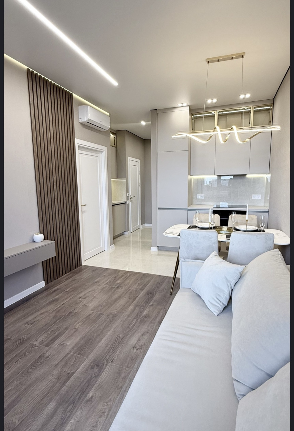 35250. Продам квартиру в 63 Жемчужине. Общая площадь 43 м². Квартира с качественным ремонтом, полностью укомплектована мебелью и техникой. Планировка изменена и включает кухню-студию и две отдельные комнаты. Из спальни есть выход на балкон с видом на ипподром. Квартира расположена на комфортном среднем этаже, что делает проживание удобным и практичным. В жилом комплексе обустроенная и охраняемая территория, зоны отдыха, детские и спортивные площадки, магазины и места для прогулок. Район отличается развитой инфраструктурой и удобной транспортной развязкой, что позволяет быстро добраться в любую часть города. Это отличный вариант как для личного проживания, так и для сдачи в аренду.
