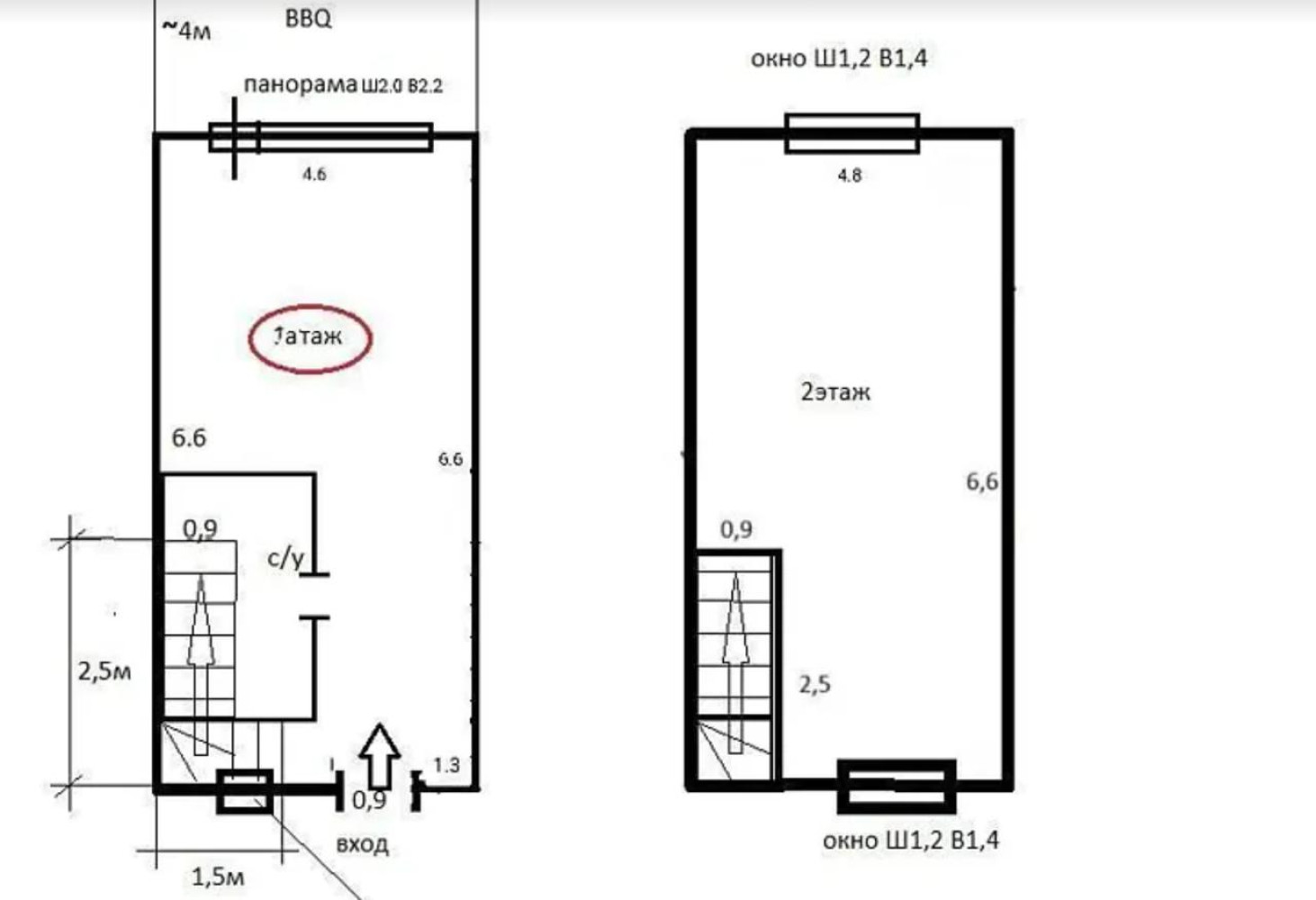 • Площа: 60/25 м²