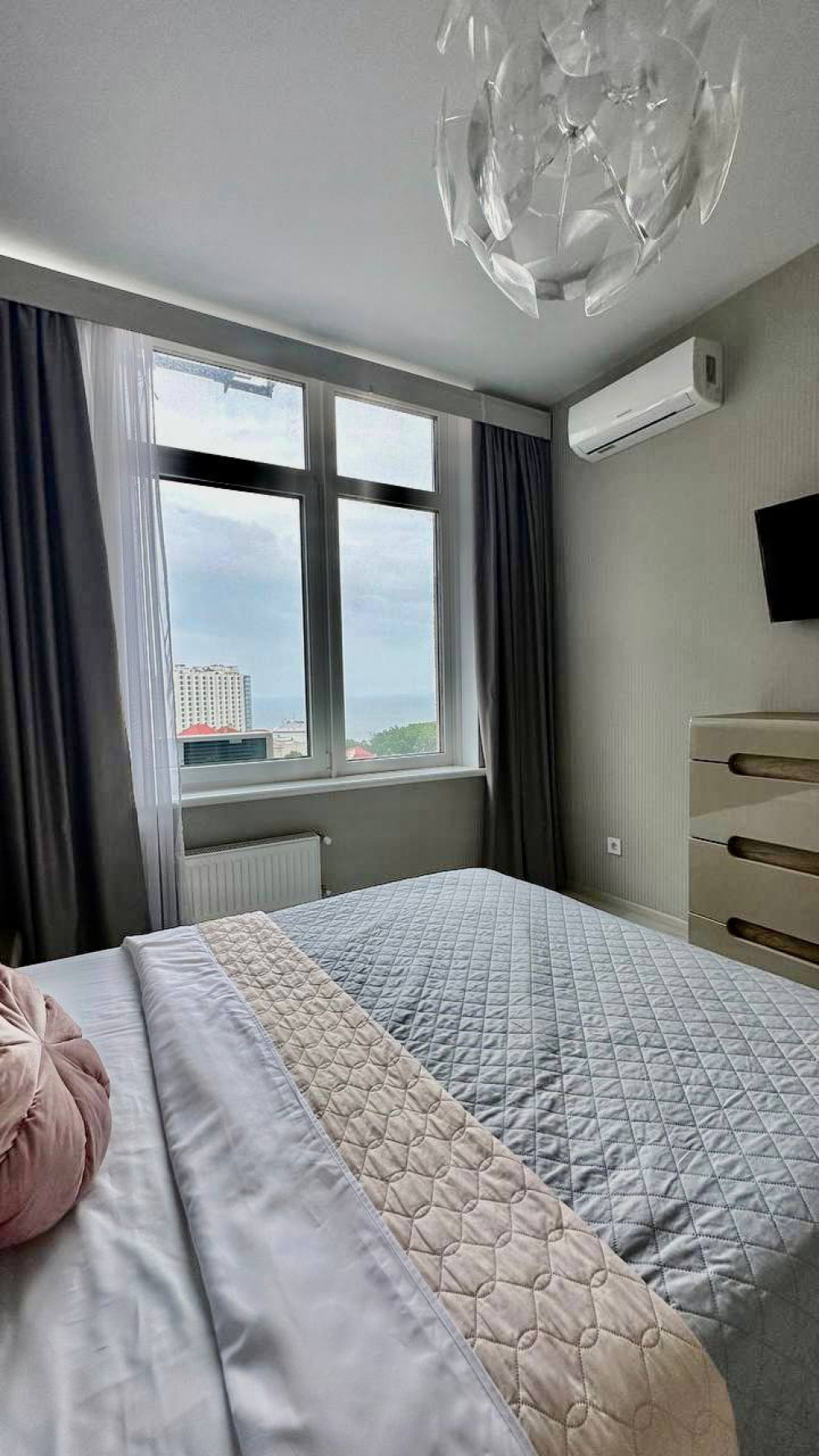 36498 Продаётся уютная 1-комнатная квартира в престижном комплексе ЖК 45 Жемчужина, расположенном в сердце Аркадии. Квартира находится на 7 этаже современного дома. Выполнен качественный ремонт — полностью готова к заселению. Функциональная планировка, просторная комната и кухня создают комфортное пространство для жизни. Дом с закрытой охраняемой территорией, консьерж-сервисом и видеонаблюдением. Отличная локация — рядом море, Аркадийская аллея, рестораны, кафе, супермаркеты и Трасса здоровья. Идеальный вариант под аренду или для комфортного отдыха у моря.
