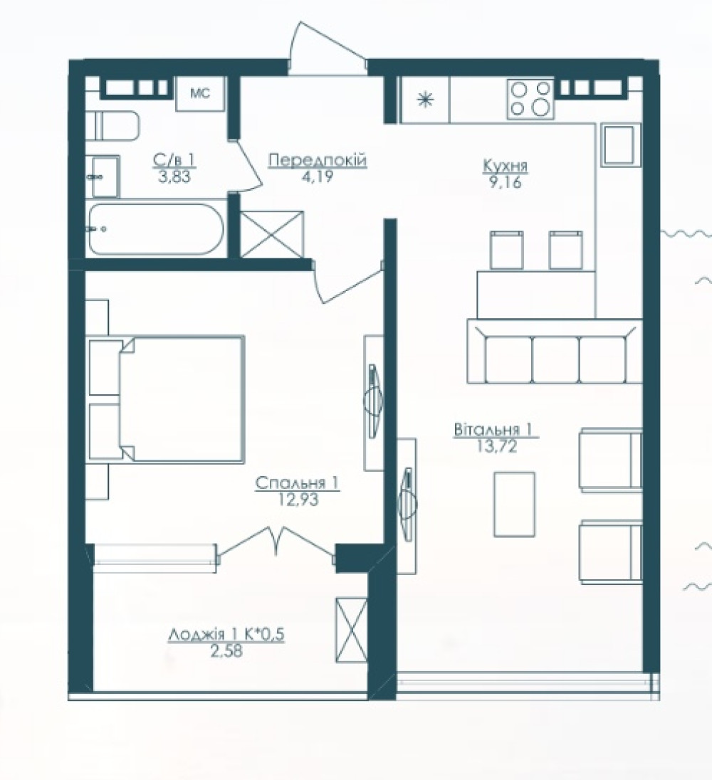 • Количество комнат: 1