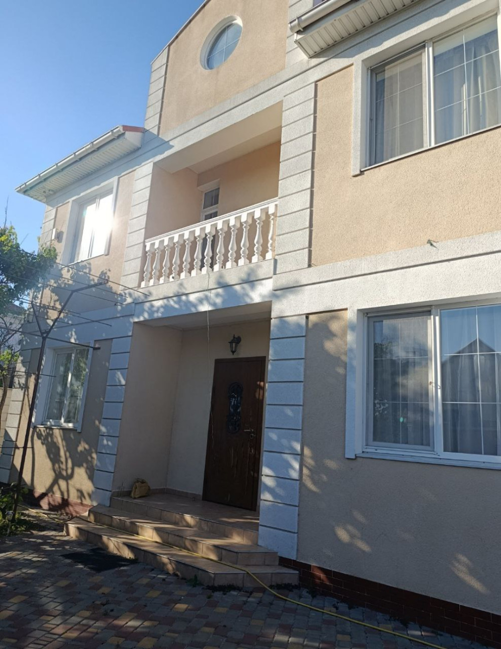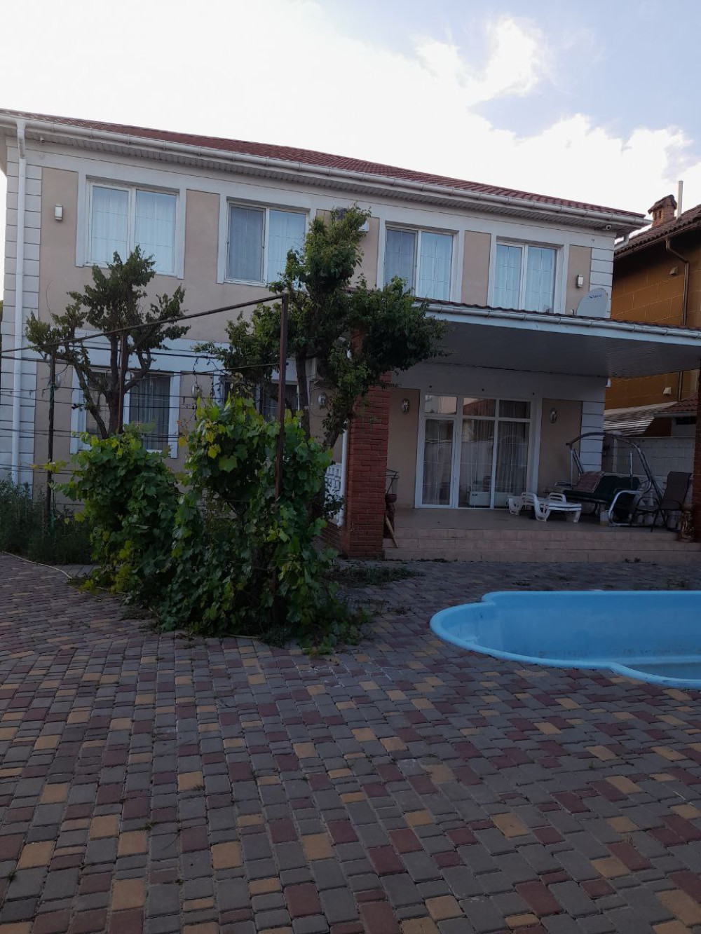 33635. Продам современный двухэтажный дом в престижном районе Совиньон. Общая площадь 208 кв.м. Светлая кухня гостиная с выходом на террасу и отдельная гостевая комната. Всего в доме пять просторных комнат. Из окон открываются приятные виды. Выполнен качественный ремонт в актуальном стиле. Дом полностью меблирован и оснащён всей необходимой бытовой техникой. Проведены все городские коммуникации. Расположен на участке, площадью 5 соток. Территория ухожена: двор выложен плиткой, разбит газон, обустроена уютная зона отдыха с барбекю и бассейном для комфортного отдыха всей семьёй. Совиньон — закрытый охраняемый посёлок у моря с развитой инфраструктурой: рядом магазины, кафе, школа, пляжи и удобная транспортная развязка. Идеальный вариант для жизни или отдыха в одном из лучших районов Одессы.
