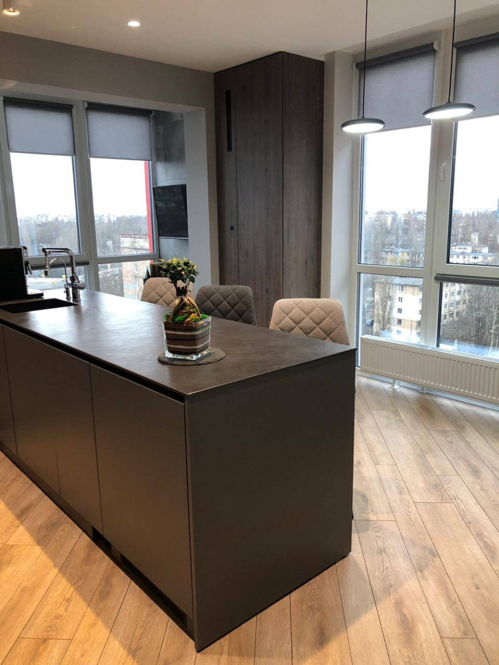 32687 Продам 2-комнатную квартиру в новом современном комплексе ЖК "Малинки". Дизайнерский проект - делали для себя! Общая площадь - 73.9 м². Две раздельные комнаты - 18.3 м² и 11.0 м², кухня - 17.8 м², коридор - 8.4 м², санузел - 3.7 м². Вся квартира с панорамным остекленением на три стороны: юг, запад, восток. Очень светлая, тёплая и уютная! Установлен двухконтурный котел BOSCH. Сплит-система кондиционирования GREEN в каждом помещении. Вся встроенная мебель делалась на заказ, Системы выдвижения BLUM. Встроенная техника: микроволновая печь, духовой шкаф, варочная поверхность, посудомойная машина фирмы Siemens, сушильная машина ELECTROLUX, стиральная машина тоже с функцией сушки фирмы LG, холодильник LG - технология NatureFRESH, два телевизора LG. Акваконтроль, теплый пол по всей лоджии и в ванной комнате, терморегуляторы, стабилизатор напряжения на всю квартиру. Остров, рабочая зона на кухне и ванной из искусственного камня. Есть фильтр для очистки воды обратный осмос. Территория комплекса и парковки охраняется. В комплексе есть: аптека, укр. почта, частный детский сад, салон красоты, тренажерный зал, зоомагазин.