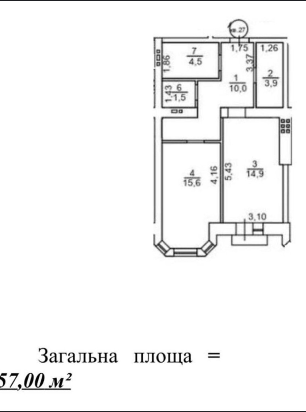 • Площадь: 57/15/15 м²