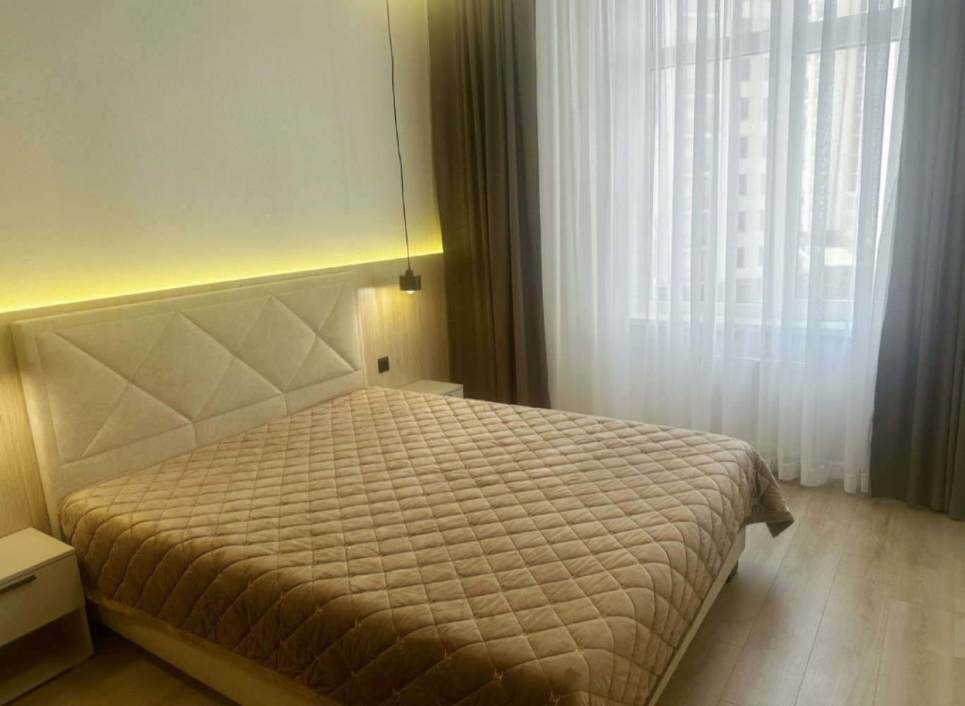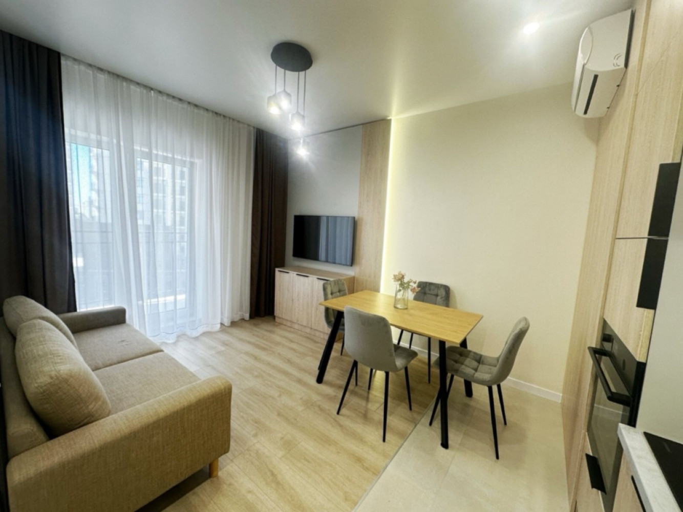 34967. Продаётся квартира с евроремонтом в ЖК 63 Жемчужина. Удобная и продуманная планировка включает просторную кухню-студию с выходом на балкон и уютную спальню. Квартира только после ремонта, полностью укомплектована мебелью и техникой. При входе расположена вместительная гардеробная. Установлены все необходимые бытовые приборы. Дом входит в состав жилого квартала KADORR City - это территория, которая создает все условия для жизни. Детские, футбольная и баскетбольная площадки, рестораны и кафетерии, терраса с зонами отдыха, собственный парк 55 000 кв. м, более 50 000 кв. м офисных и торговых помещений и многое другое. Подземный паркинг с автомойкой, закрытая охраняемая территория. Отличный вариант для комфортного проживания.