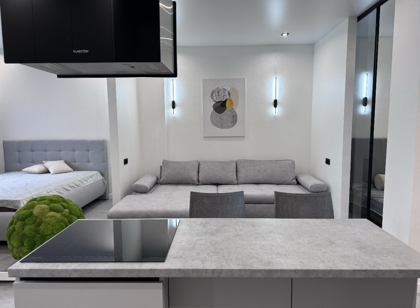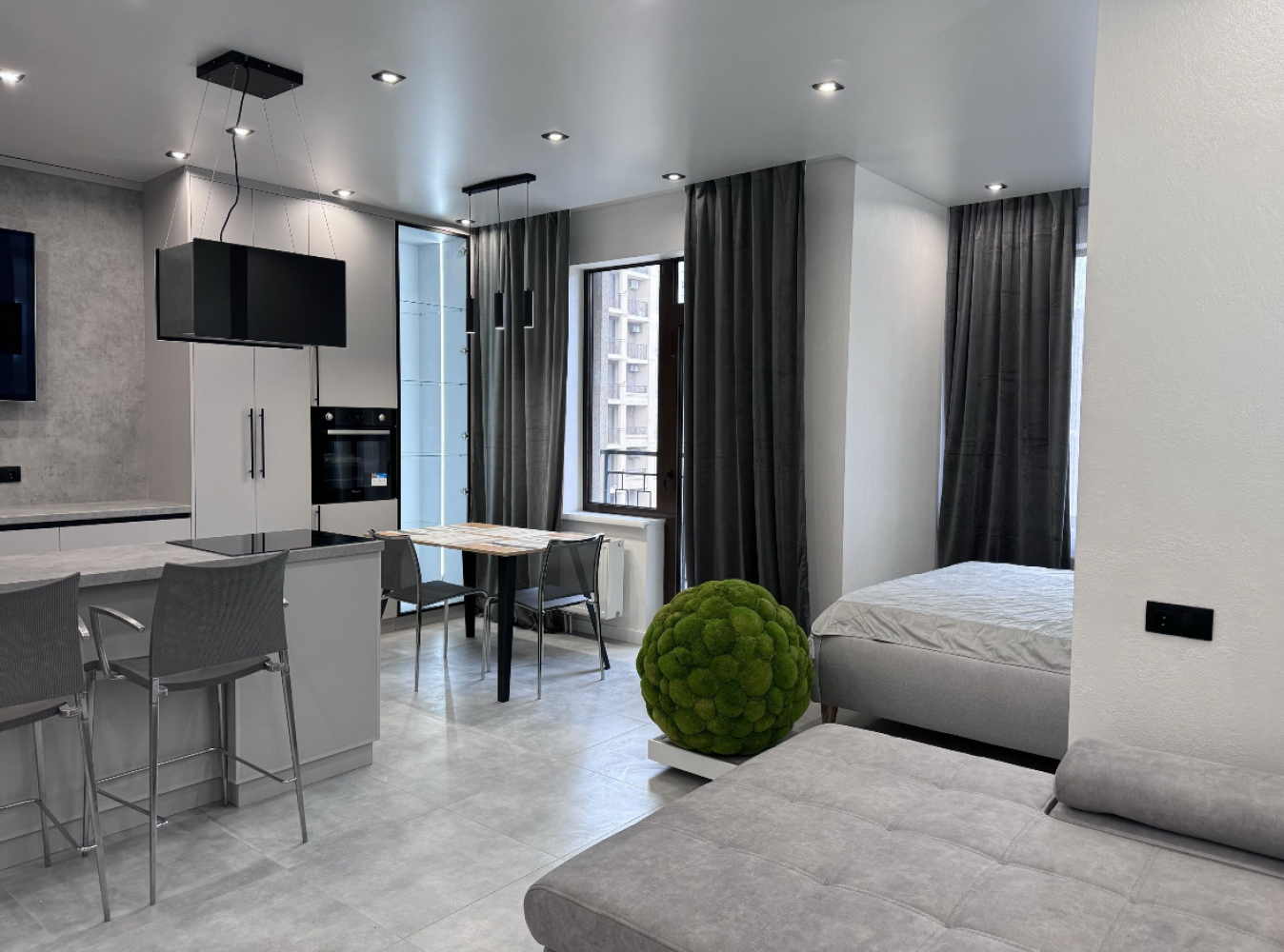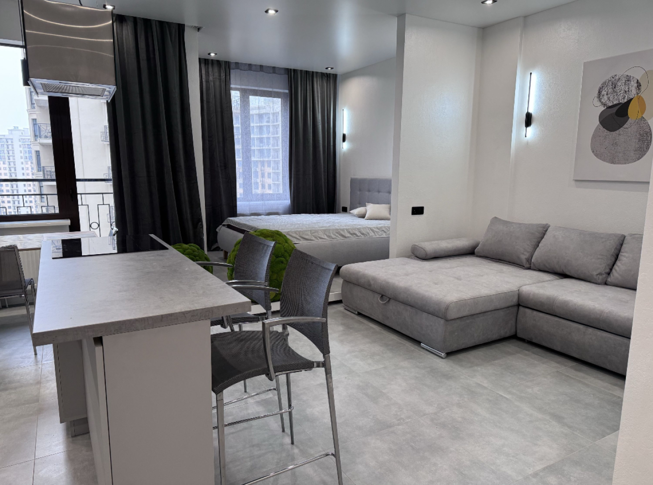 35966. Продам стильную квартиру в современном жилом комплексе ЖК Родос. Общая площадь — 57 м². Удобная планировка включает просторную кухню-гостиную, отдельную спальню и санузел. В квартире выполнен новый дизайнерский ремонт с акцентами на натуральные оттенки и элементы зелени. Оборудована функциональная островная кухня, установлена вся необходимая техника. Комплекс расположен в престижной части Аркадии, с закрытой охраняемой территорией, детскими и спортивными площадками, подземным паркингом и развитой инфраструктурой — всё, что нужно для комфортной жизни у моря.